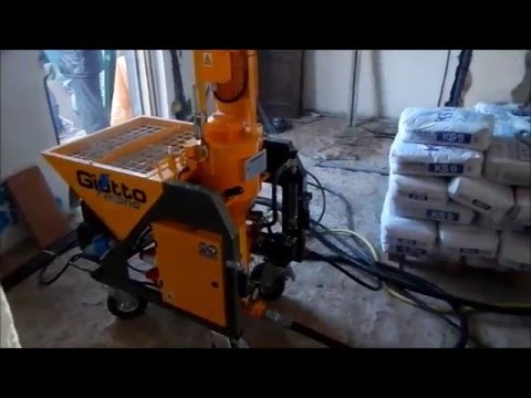In this video, the single-phase machine, is applying interior-use lime/cement plaster.