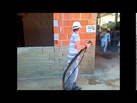 In this video, the single-phase machine, is applying interior-use lime/cement plaster.
